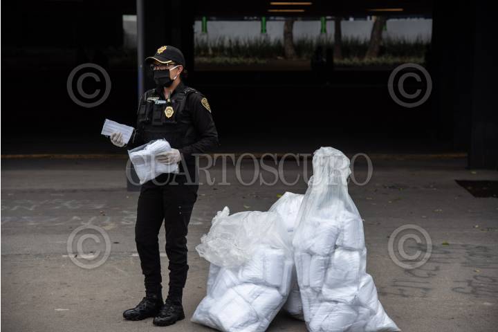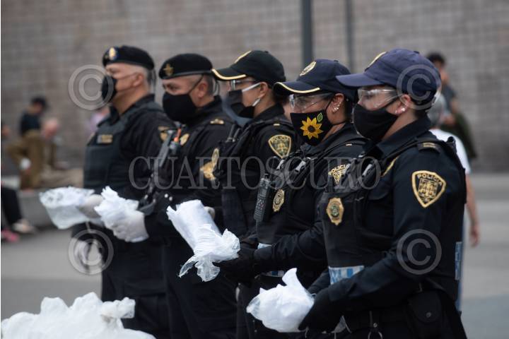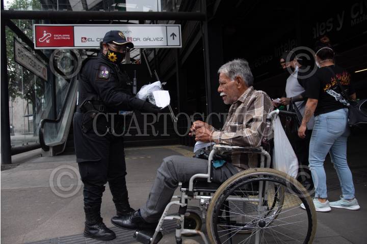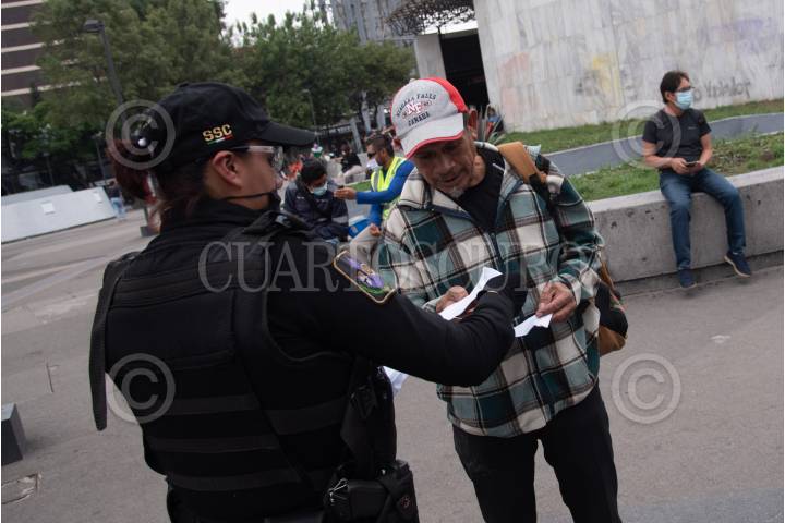 Elementos de la Secretaría de Seguridad Ciudadana (SSC) realizaron la entrega gratuita de cubrebocas a traseúntes en la glorieta de insurgentes, para incrementar las medidas de sanidad durante la pandemia de coronavirus (covid-19).