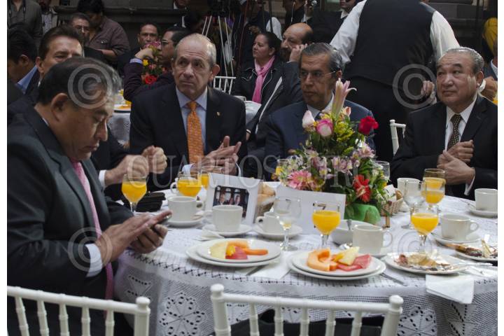 MÉXICO, D.F., 12MARZO2015.- Octavio Campos, director de Comunicación Social de la Secretaría de Seguridad Pública (SSP), Enrique Fernández Fasnacht, director del Instituto Politécnico Nacional (IPN), acompañado de Rogelio Ortega, gobernador de Guerrero, y Alejandro Ramos Esquivel, director de la Agencia Notimex, durante la entrega del Premio Nacional de Periodismo en el Club de Periodistas. FOTO: MARÍA JOSÉ MARTÍNEZ /CUARTOSCURO.COM
