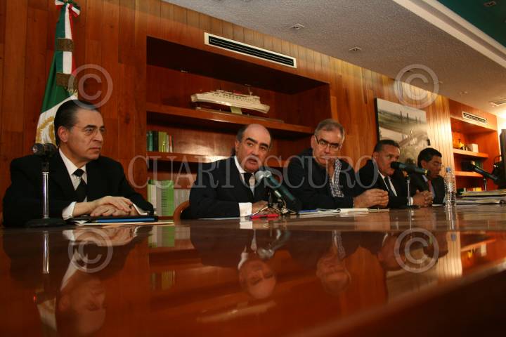 MÉXICO, D.F., 07NOVIEMBRE2008.- Gilberto López Meyer Director General de Aeropuertos y Servivios Auxiliares en conferencia de prensa donde se informó que la investigación de campo de el avión que cayó donde murió el secretario de Gobernación, Juan Camilo Mouriño, el pasado martes. prácticamente concluyó, y que mañana habrá un recorrido en la zona del accidente para los medios. FOTO: SÁSHENKA GUTIERREZ/CUARTOSCURO.COM