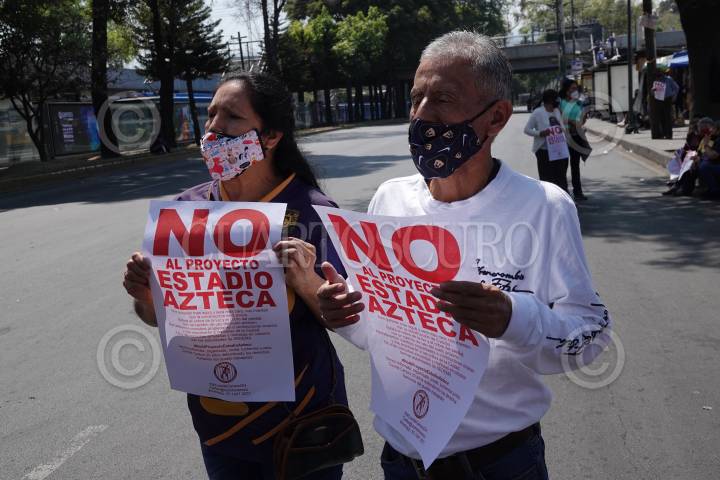 Vecinos de la colonia Santa Ursula Coapa, en la alcaldía Coyoacán, cerraron Avenida Tlalpan debido a una asamblea en contra del mega proyecto de las inmobiliarias en el Estadio Azteca
