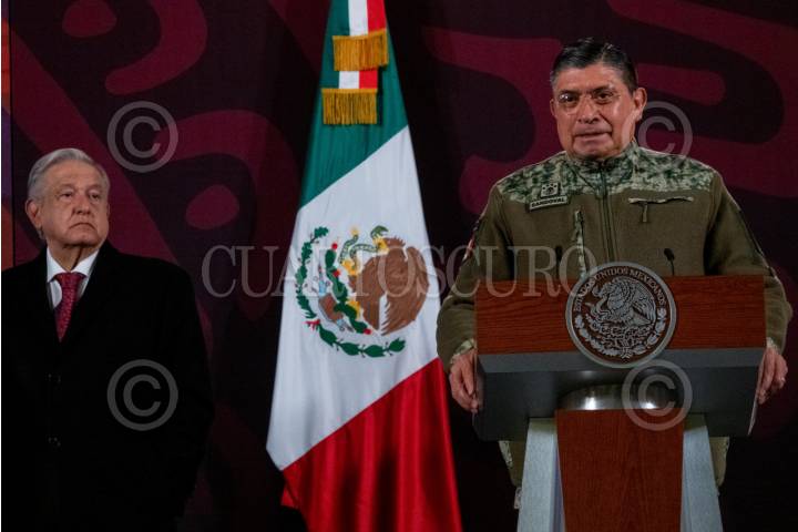 CIUDAD DE MÉXICO, 23ENERO2024.- El General Isidoro Pastor, director general del Aeropuerto Internacional Felipe Ángeles, S.A. de C.V., durante la conferencia de prensa matutina desde Palacio Nacional en la que se destacó la importancia de las Fuerzas Armadas para la construcción y administración de los megaproyectos del actual gobierno. FOTO: GALO CAÑAS/CUARTOSCURO.COM