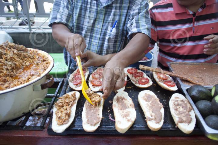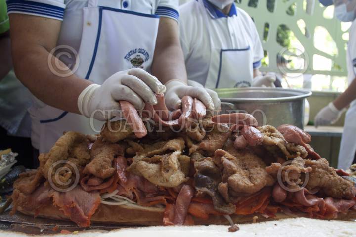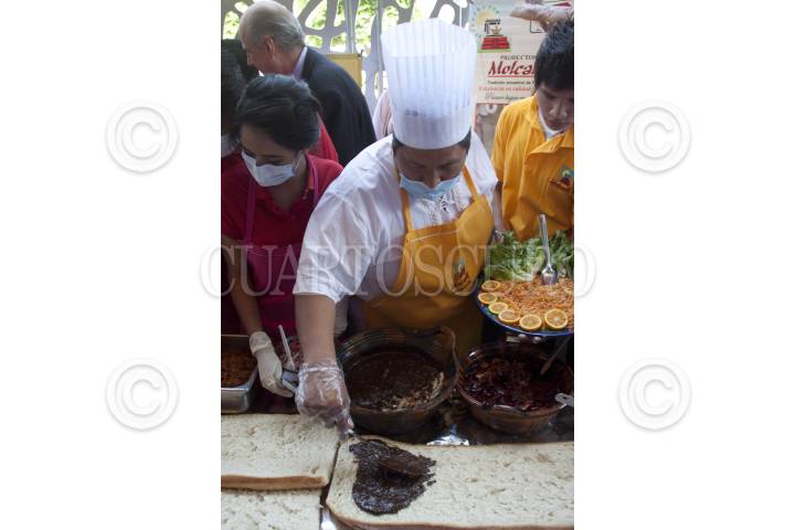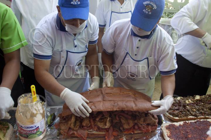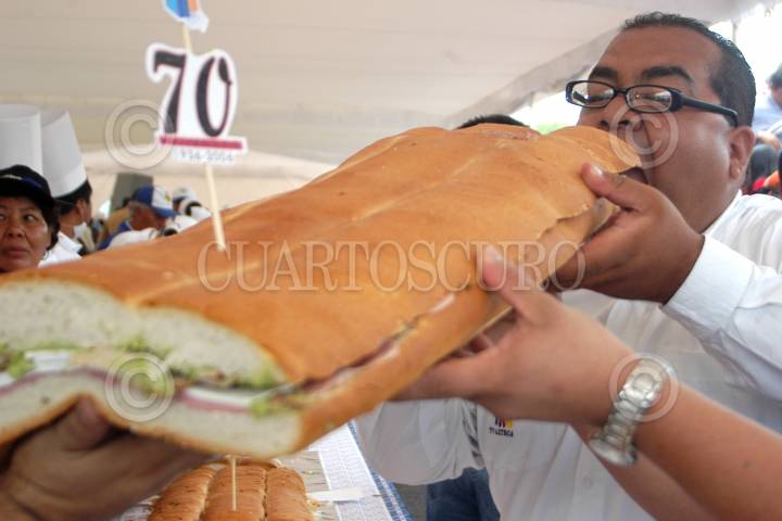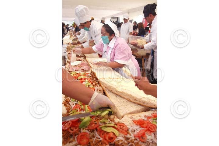 MEXICO, D.F. 23JULIO2004.- Treinta y nueve torteros realizaron la megatorta de 25 metros de largo en la inauguración del primer festival de la torta en México. FOTO: Iván Stephens/CUARTOSCURO.COM