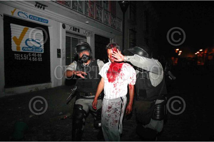 OAXACA, OAXACA 25NOVIEMBRE2006.- Un detenido, sangar de la cabeza, tras los enfrentamientos entre meimbros de la APPO y elementos de la PFP en el centro de la ciudad. FOTO: MAX NUÑEZ/CUARTSOCURO.COM