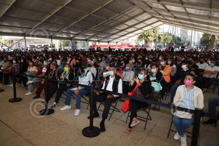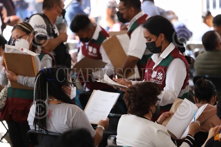 Beneficiarios reciben recursos del Programa de Mejoramiento de Vivienda de la Ciudad de México en la explanada del Monumento a la Revolución.