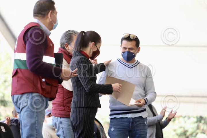 La jefa de gobierno Claudia Sheinbaum asistió a la alcaldía Coyoacán a la entrega de recursos del programa de mejoramiento de vivienda en la Ciudad de México.