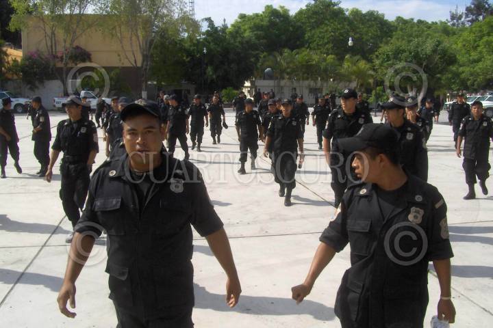CHILPANCINGO, GUERRERO 15JUNIO2006.- Mas de tres mil elementos de la policia del estado, iniciaron un paro de labores para exigir al gobernador del estado Zeferino Torreblanca Galindo y al secretario de seguridad publica Heriberto Salinas Altes, aumento salarial, la destitucion del subsecretario operativo Carlos Rene Juarez Baduin, pago de viaticos, armamento, uniformes, seguro de vida, entre otras demandas mas. FOTO: Oscar Alvarado/CUARTOSCURO.COM