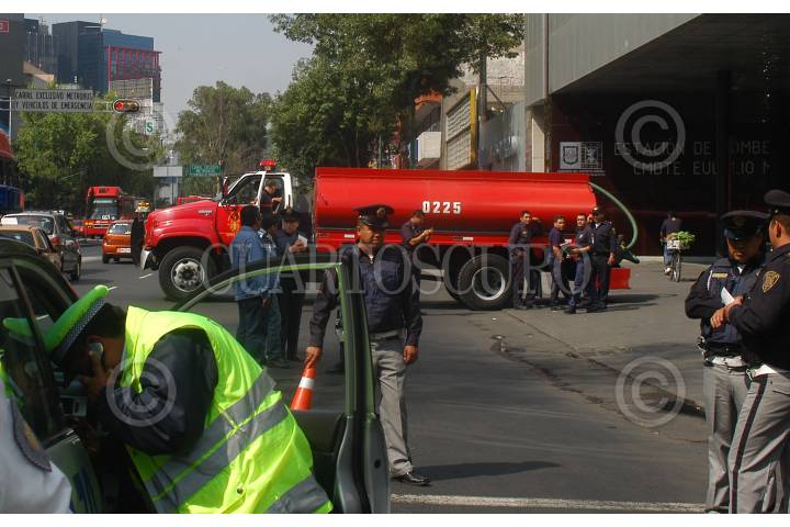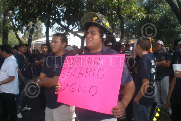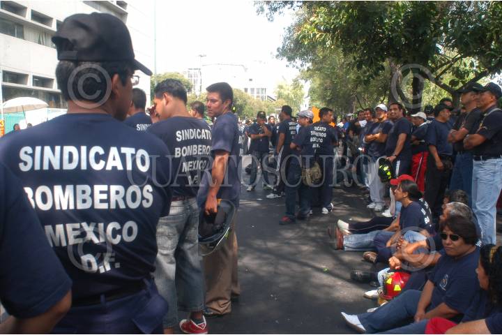 MÉXICO, D.F., 11JUNIO2009.- Integrantes del Heroico Cuerpo de Bomberos de esta ciudad se manifestaron bloqueando algunas avenidas como la de los Insurgenteas a la altura de la colonia San Rafael y avenida Fray Servando esta última en la colonia Merced. Los llamados vulcanos exigieron se les mejore sus salarios y los equipos de trabajo. FOTO: LUIS CARBAYO/CUARTOSCURO.COM