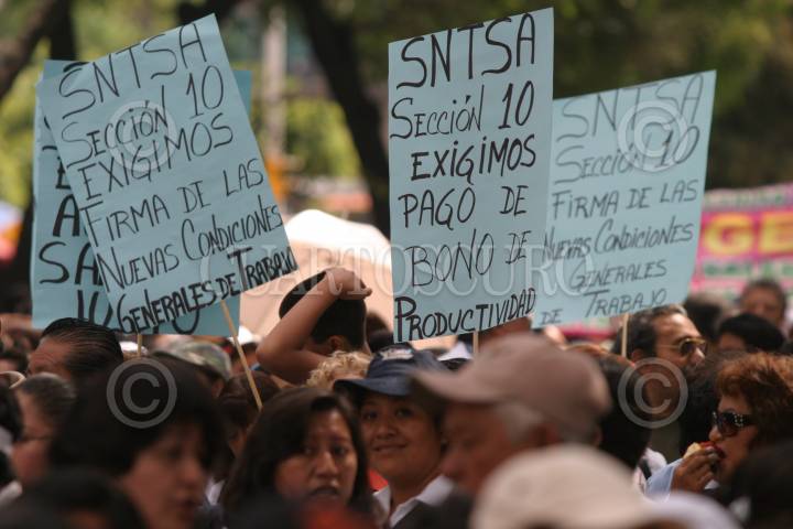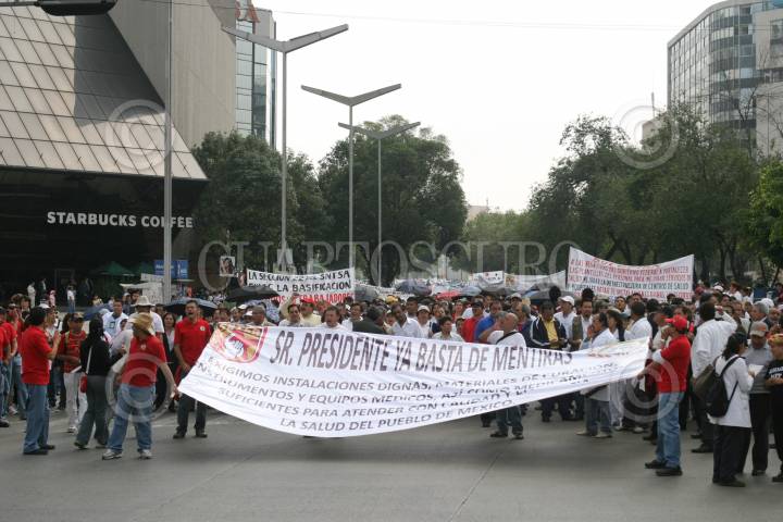 MÉXICO, D.F., 12AGOSTO2010.- Trabajadores integrantes del Sindicato Nacional de Trabajadores de la Secretaría de Salud, marcharon del Zócalo a la Secretaría de Gobernación para exigir mejoras salariales. FOTO: MOISÉS PABLO/CUARTOSCURO.COM