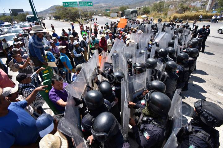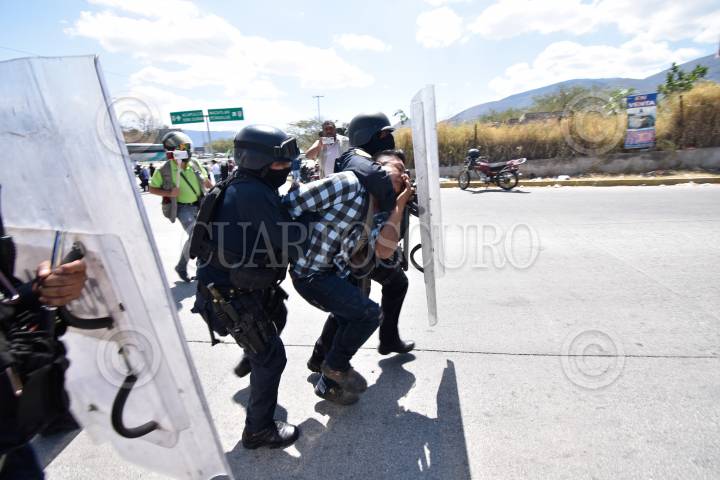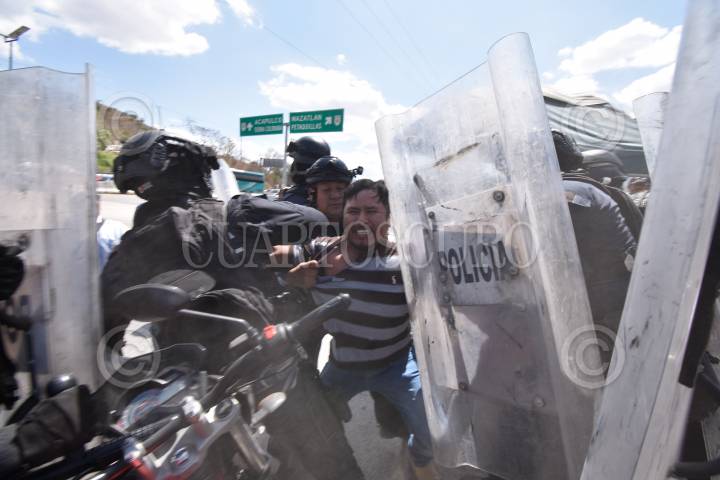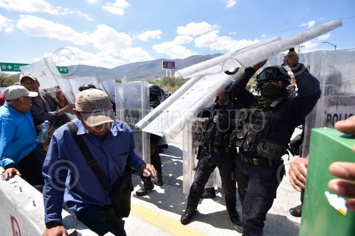 Policías antimotines desalojaron a personas que bloqueaban la Autopista del Sol, quienes exigían mejore en carreteras de sus localidades