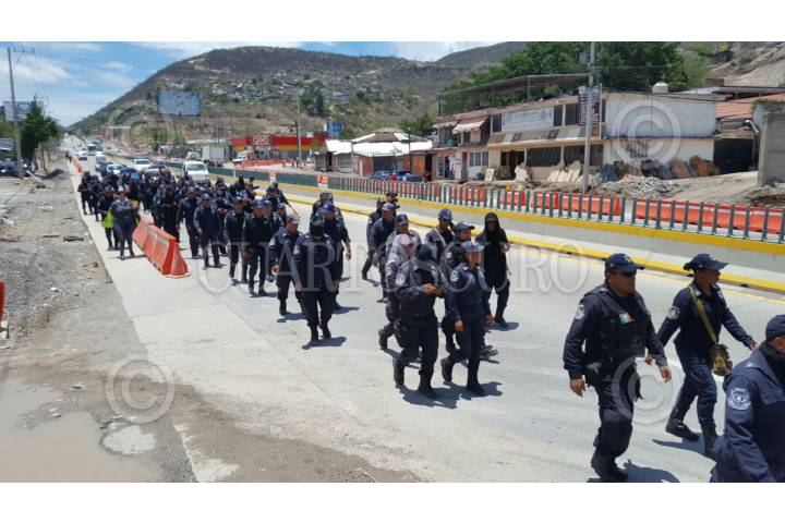 CHILPANCINGO, GUERRERO, 31MAYO2017.- Policías estatales marcharon por tercer día consecutivo, el día de hoy se dirigieron a la Comisión Estatal de los Derechos Humanos, para pedir intervenga en su caso. Los uniformados piden mejoras en sus condiciones de trabajo, tales como, un bono de riesgo, uniformes y municiones. FOTO: JOSÉ I. HERNÁNDEZ /CUARTOSCURO.COM
