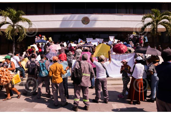 TAPACHULA, CHIAPAS. 30ENERO2024.- COAPATAP protesta en la presidencia municipal. 300 trabajadores del comité de agua potable y alcantarillado de Tapachula llevan 6 días de paro y marcharon por las periciales calles. " Pueblo escucha COAPATAP esta en la lucha", si no dan solución tapachula se puede quedar sin agua. Son 23 trabajadores despedido injustamente. FOTO: DAMIÁN SÁNCHEZ/CUARTOSCURO.COM
