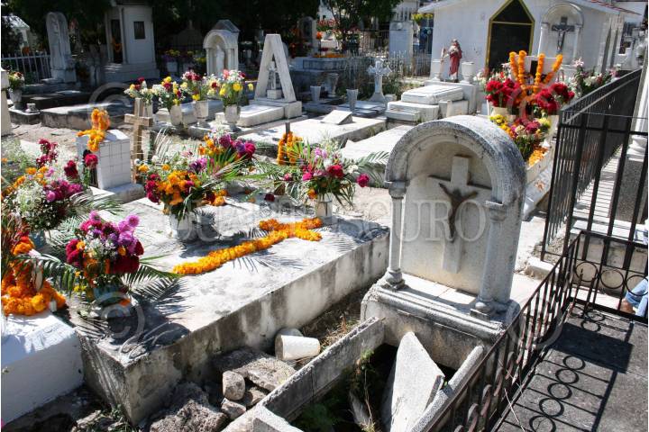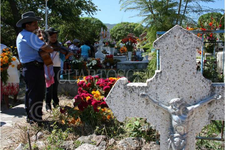 CHILPANCINGO,GUERRERO 02 NOVIEMBRE2008.- Cientos de personas se dieron cita en el pateon central municipal de la capital del estado, para visitar las tumbas de sus familiares donde depositaron flores, cadenas de cempazuchitl asi como para arreglarlas, lavarlas y limpiarlas para posteriormente contrata grupos de musica norteña o mariachi quienes interpretaron melodias que en vida les gustabas a los difuntos, celebrando asi como cada año el Dia de Muertos o Fieles Difuntos. FOTO: OSCAR ALVARADO/CUARTOSCURO.COM