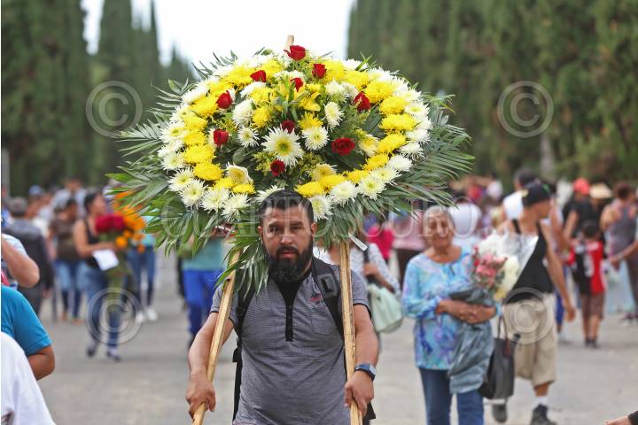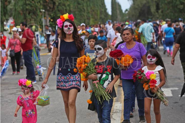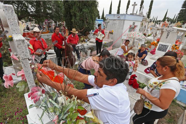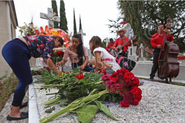 GUADALAJARA, JALISCO, 02NOVIEMBRE2018.- Miles de personas acuden a los diversos panteones de la Zona Metropolitana de la ciudad este día de muertos para visitar a sus difuntos, llevarles flores, adornar sus tumbas y hasta cantarles algunas melodías con bandas, norteños etc. FOTO: FERNANDO CARRANZA GARCIA /CUARTOSCURO.COM