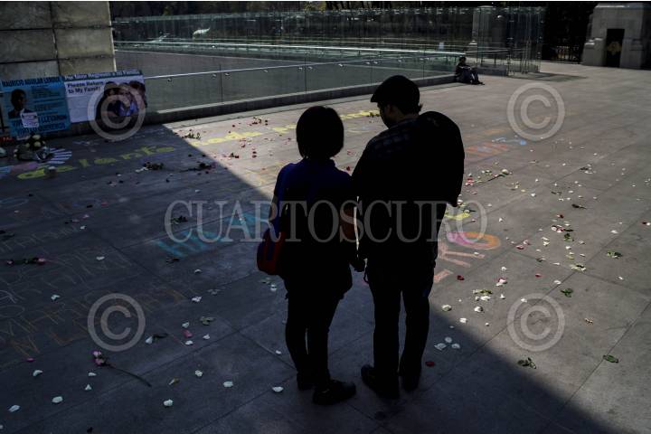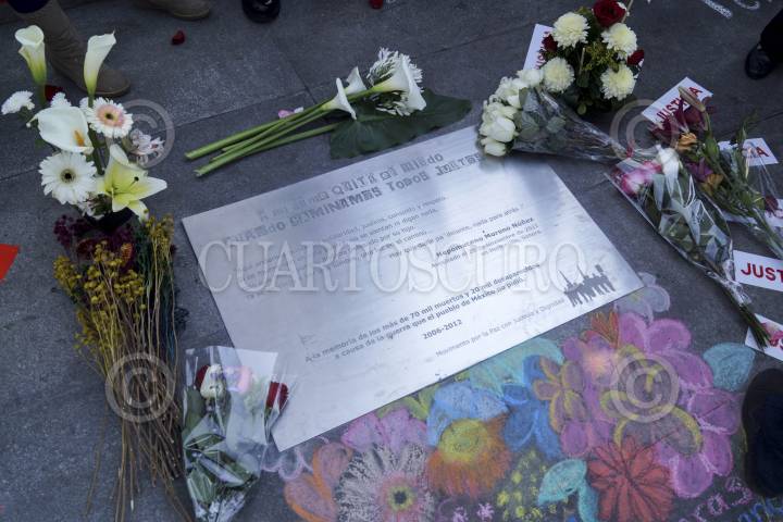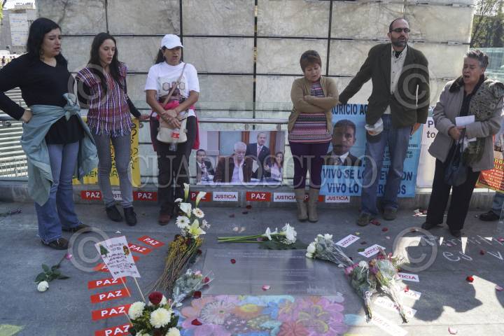 MÉXICO, D.F., 30NOVIEMBRE2012.- Integrantes del Movimiento por la Paz con Justicia y Dignidad, realizaron de manera simbólica la inauguración de la Estela de luz y de la Paz, como ellos han decidido tomar y llamar a la Estela de Luz. Con una placa en memoria a las victimas de la guerra que dice: "A la memoria de los más de 70 mil muertos y 20 mil desaparecidos a causa de la guerra que el pueblo de México no pidió, 2006-2012; rechazaron la construcción del memorial que el gobierno federal construye en el Campo Marte y comentaron que es una vergüenza que se encuentre en un campo lleno de sangre. FOTO: ADOLFO VLADIMIR /CUARTOSCURO.COM