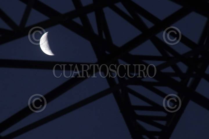 YECAPIXTLA, MORELOS, 29MARZO2019.- La luna menguante se observa entre una estructura de una torre de transmisión de energía eléctrica. FOTO: MARGARITO PÉREZ RETANA /CUARTOSCURO.COM