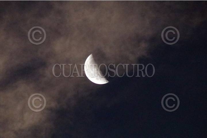 CHILPANCINGO, GUERRERO, 28JUNIO2015.- La luna menguante se mira en el cielo de Chilpancingo, donde momentánea se pierde por el paso de las nubes, que son la esperanza de personas que están asentadas en la parte alta de esta ciudad en espera de la lluvia con ansiedad; ante la falta del vital líquido. FOTOS: JOSÉ I. HERNÁNDEZ /CUARTOSCURO.COM