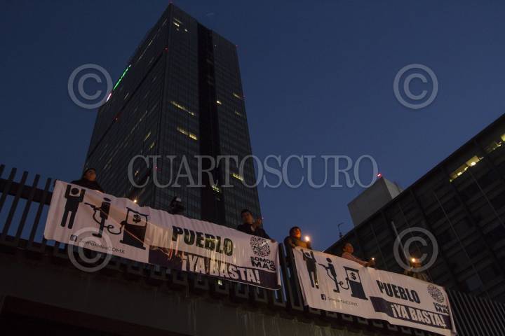 CIUDAD DE MÉXICO, 08ENERO2017.- Miembros de la organización Somos Más se manifestaron en contra del "gasolinazo", sobre la avenida Marina Nacional, afuera de la Torre de Pemex. FOTO: ISAAC ESQUIVEL /CUARTOSCURO.COM