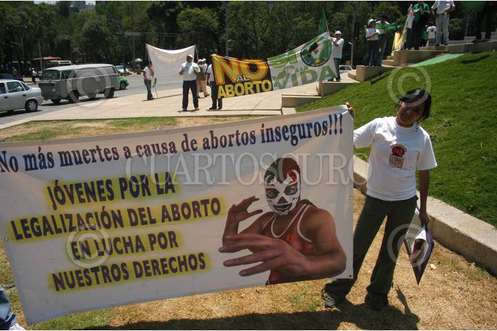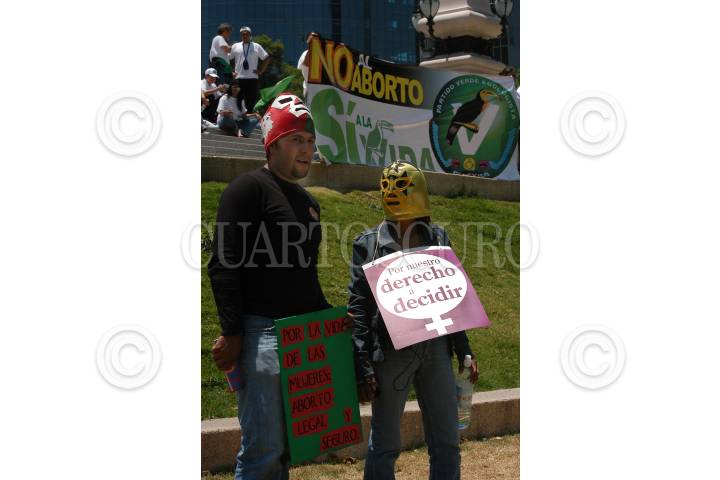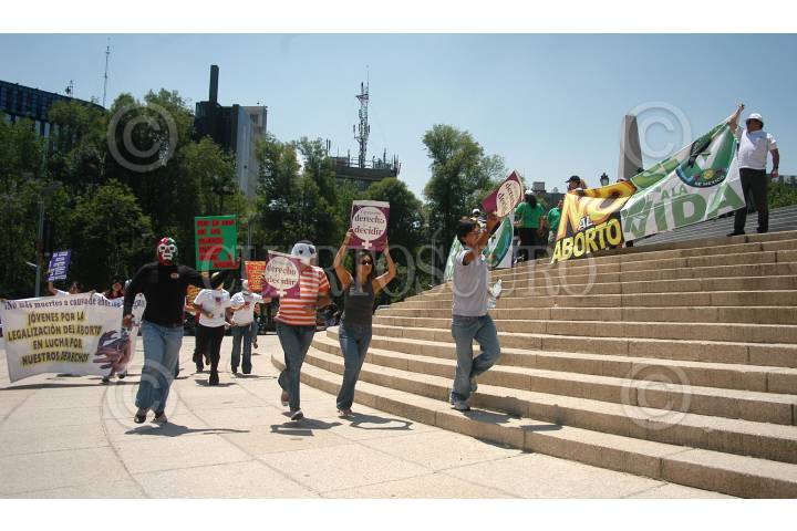 MÉXICO D.F. 23ABRIL2007.-Simpatizantes del partido verde se manifestaron en contra de la iniciativa de ley en favor del aborto y al mismo tiempo integrantes de diverzas organizaciones politicas se manifestavan en favor de dicha iniciativa, esto en el Ángel de la Independencia. FOTO: GUILLERMO PEREA/CUARTOSCURO.COM
