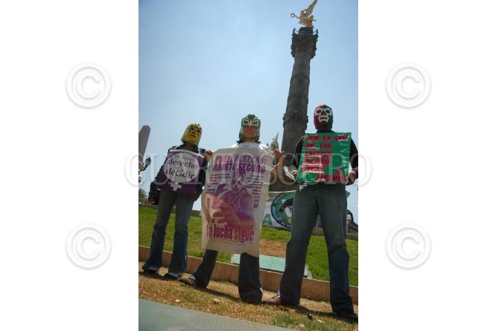 MÉXICO D.F. 23ABRIL2007.-Integrantes de diberzas organizaciones politicas se manifestaron en favor de la quinta causal de ley del aborto, esto en el Ángel de la Independencia. FOTO: GUILLERMO PEREA/CUARTOSCURO.COM