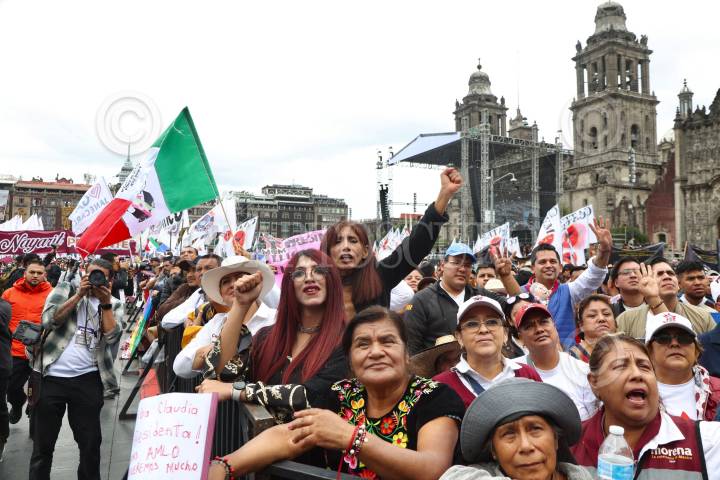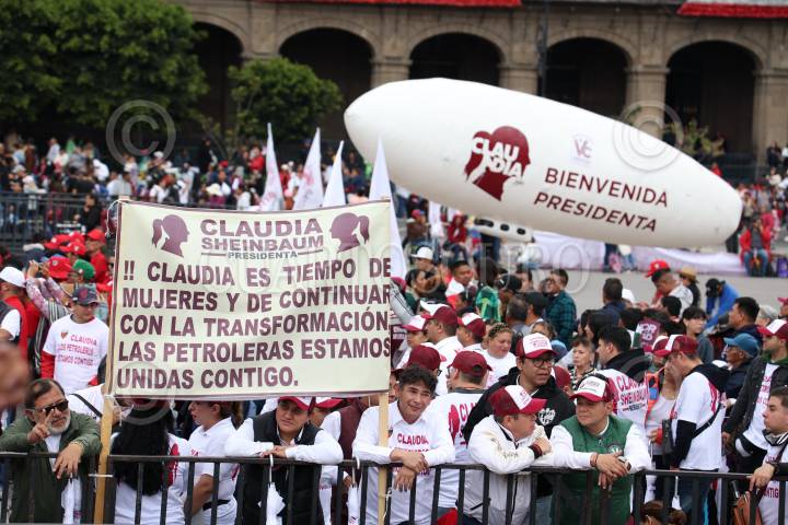 CIUDAD DE MÉXICO, 01OCTUBRE2024. Simpatizantes a la presidenta Claudia Sheinbaum previo a la ceremonia de los pueblos indígenas y el pueblo afromexicano para la entrega del Bastón de Mando, en la plancha del zócalo de la Ciudad de México. FOTO: EDGAR NEGRETE LIRA/CUARTOSCURO.COM