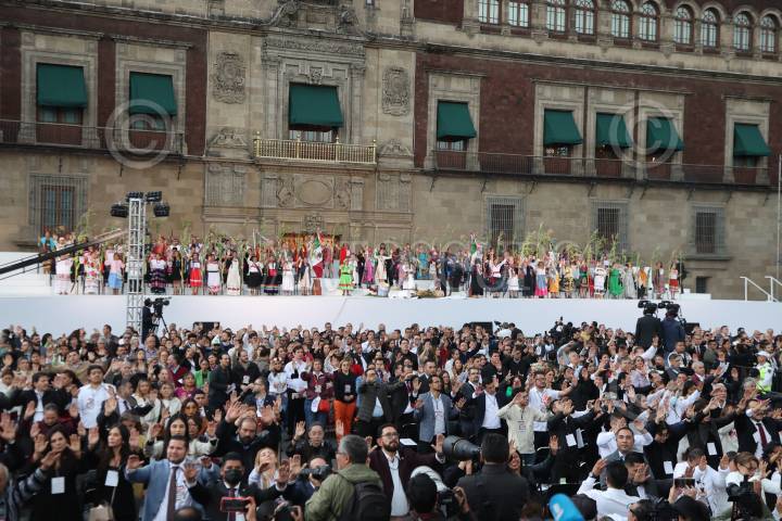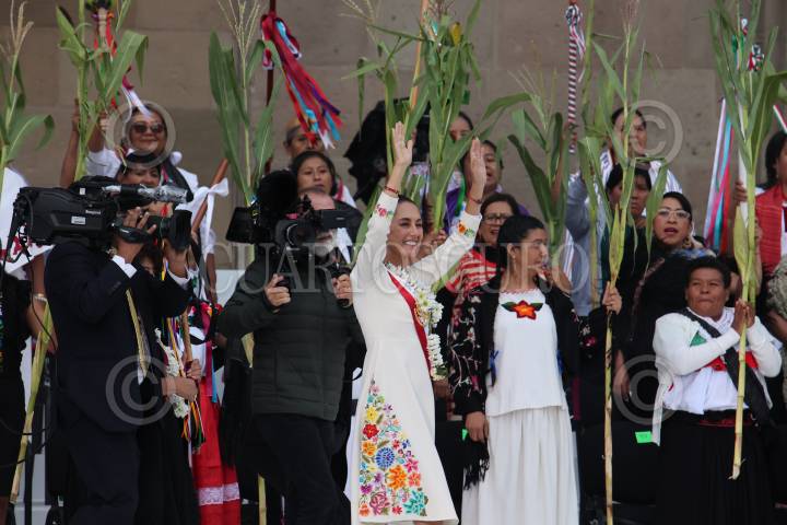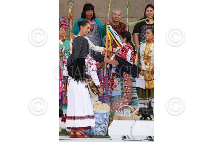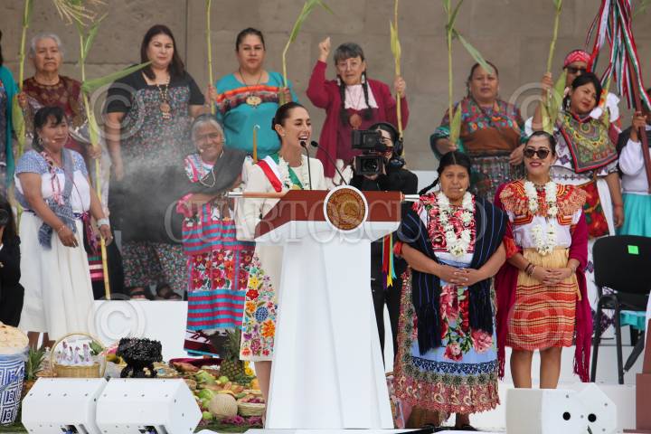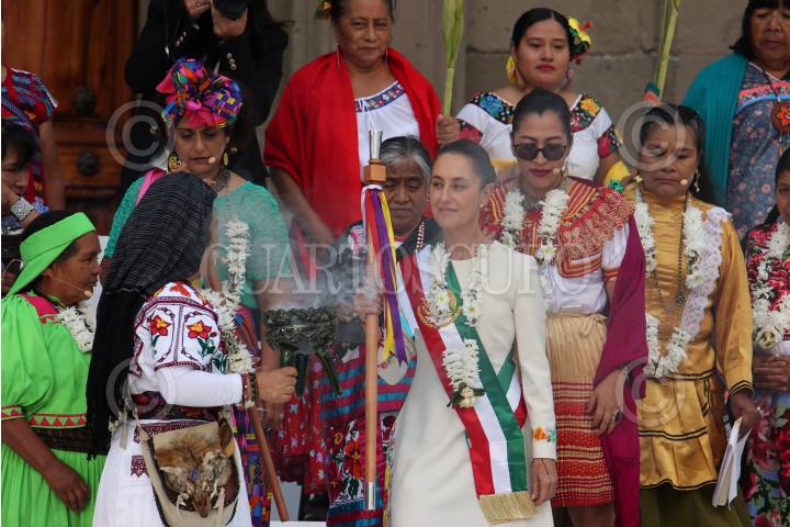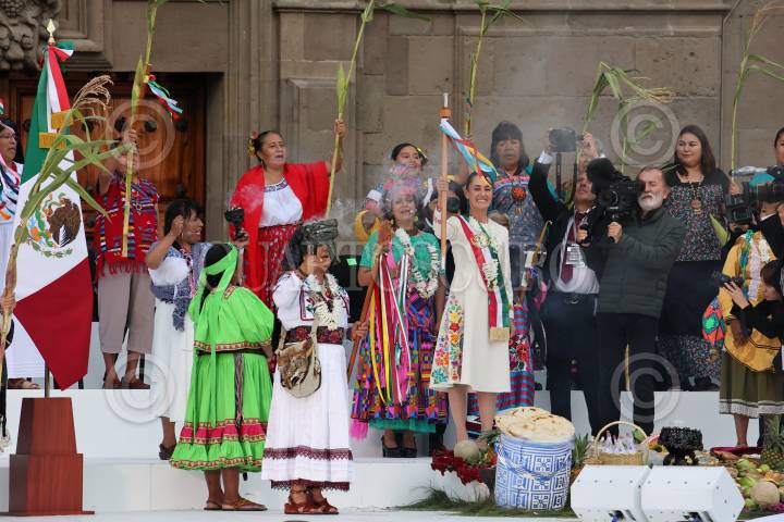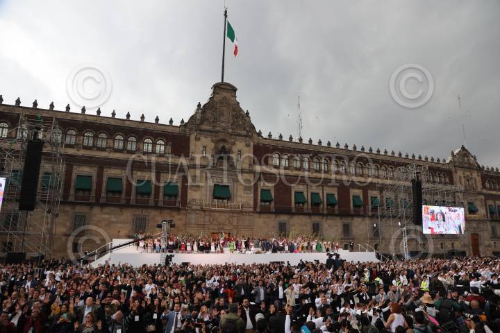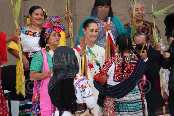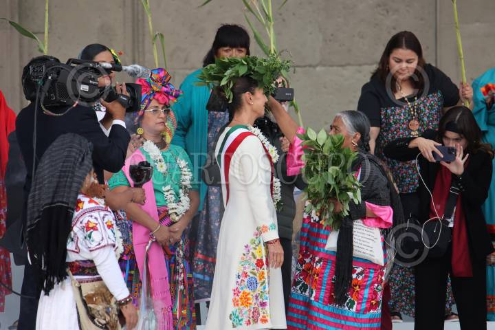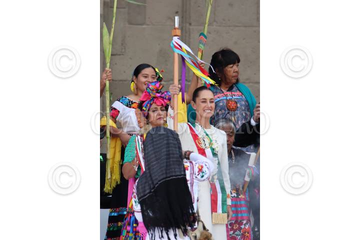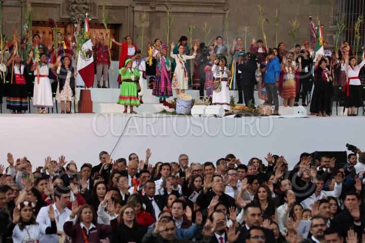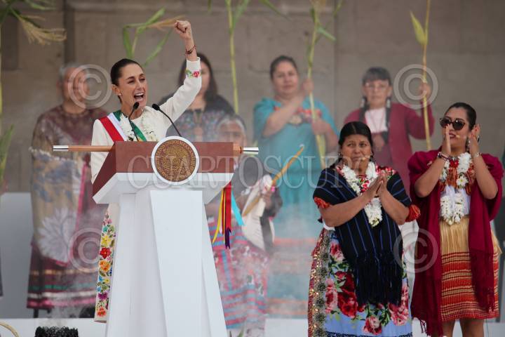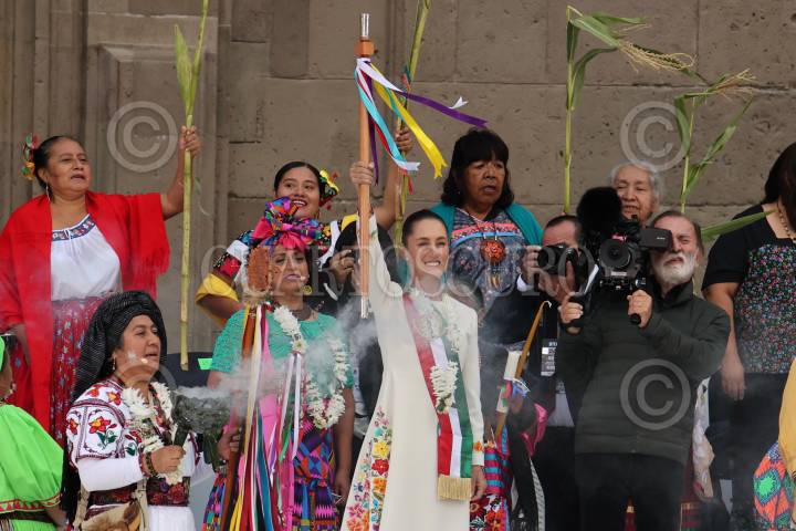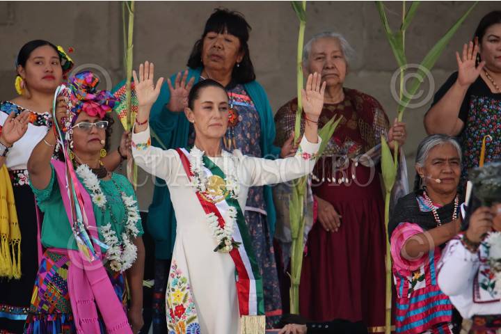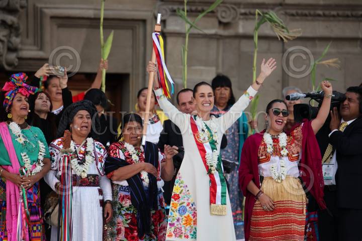 CIUDAD DE MÉXICO, 01OCTUBRE2024. La presidenta constitucional de los Estados Unidos Mexicanos, Claudia Sheinbaum Pardo durante la ceremonia de los pueblos indígenas y el pueblo afromexicano donde le fue entregado el Bastón de Mando, en la plancha del zócalo de la Ciudad de México. FOTO: EDGAR NEGRETE LIRA/CUARTOSCURO.COM