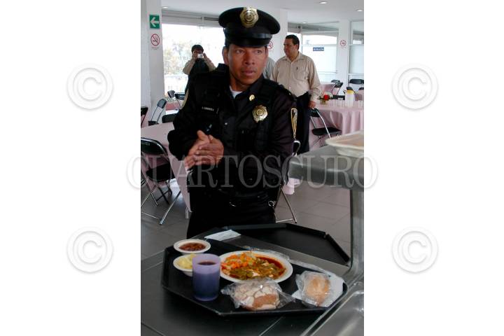 MÉXICO, D.F. 07MARZO2010.- En instalaciones de la Secretaria de Seguridad Pública del D.F., se realizo la presentación de los nuevos menús de comida que consumirán elementos de la policía como parte del Programa Integral Contra la Obesidad. FOTO: RODOLFO ANGULO/CUARTOSCURO.COM