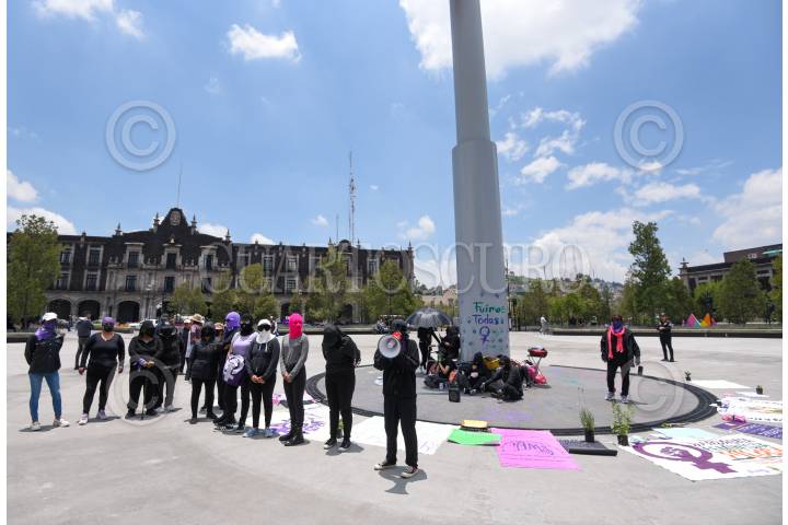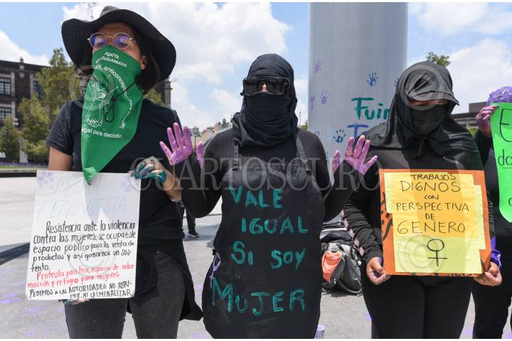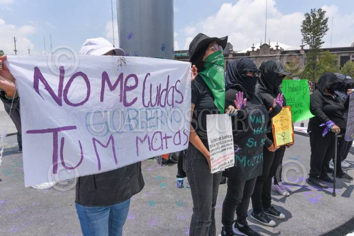Colectivas feministas se manifestaron en contra de la violencia y reprensión por parte de autoridades municipales de Toluca y las dejen trabajar en la Mercadita Feminista.