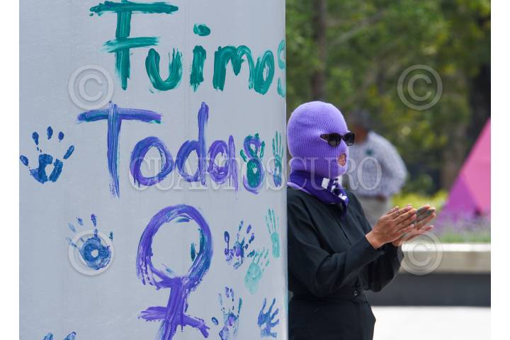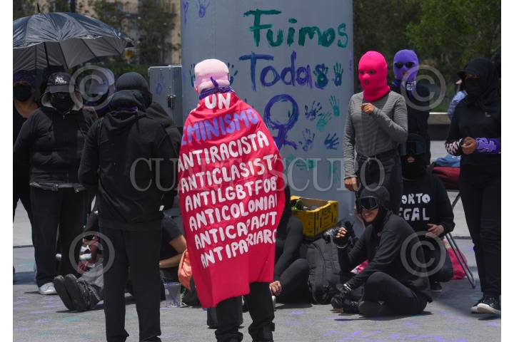 CIUDAD DE MÉXICO, 08MARZO2024.- Un grupo de mujeres feministas protestaron e impidieron la realización de un mitin político en la explanada de Bellas Artes, en consigna de sufrir violencia económica por parte del gobierno capital al impedirles colocar la "mercadita feminista". FOTO: MARIO JASSO/CUARTOSCURO.COM