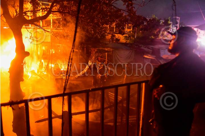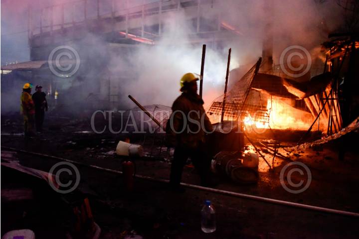 ACAPULCO, GUERRERO, 25DICIEMBRE2024.- Esta madrugada un incendio consumió 31 locales semifijos en el Mercado Central de Acapulco, fueron bomberos de Protección Civil del municipio los que se encargaron de sofocar el incendio. Hasta el momento, las autoridades no han dando a conocer cual fue la causa del siniestro, sin embargo esta fue la segunda ocasión que el inmueble se incendió en el 2024. FOTO: CARLOS CARBAJAL/CUARTOSCURO.COM