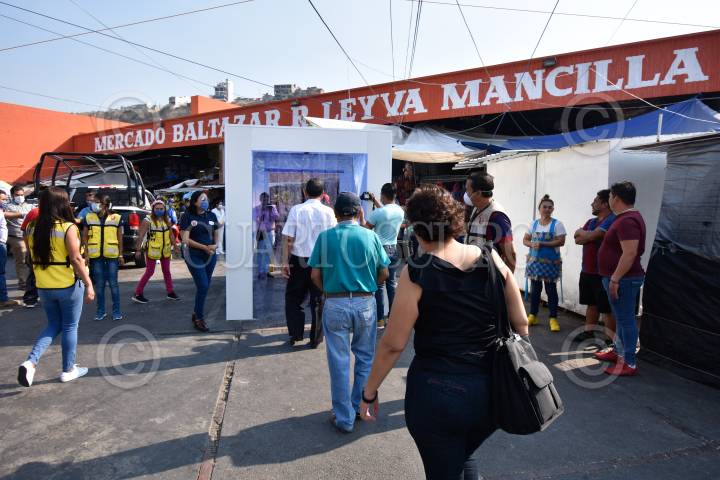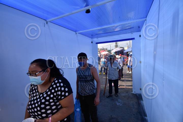 En el mercado central colocaron un túnel de sanitización para las personas que acuden a realizar sus compras