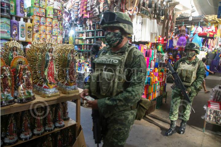 Soldados realizaron un recorrido por el mercado central de Acapulco para invitar a los locatarios a denunciar cualquier delito que observen o del que sean víctimas.