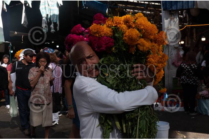 CIUDAD DE MÉXICO. 27OCTUBRE2023.- En el marco de la celebración del Día de Muertos, decenas de personas acudieron al Mercado de Jamaica a realizar compras de flores de cempasúchitl, papel picadoy fruta para las ofrendas de sus seres queridos. FOTO: GRACIELA LÓPEZ /CUARTOSCURO.COM