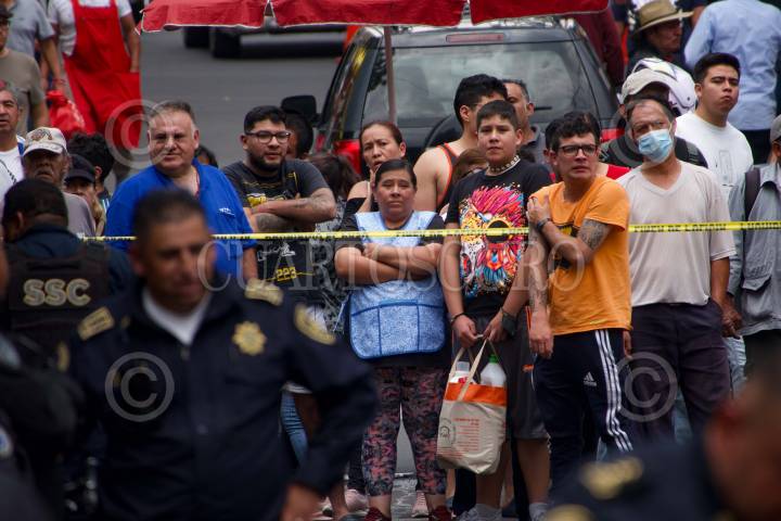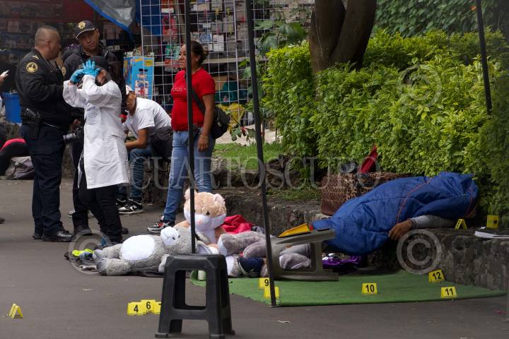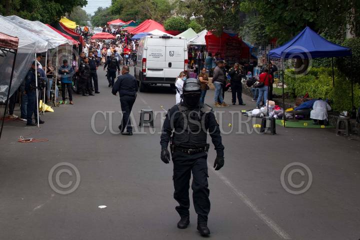 Aspectos de un presunto comerciante, atacado con un arma de fuego en un tianguis de la alcaldía Tlalpan.
