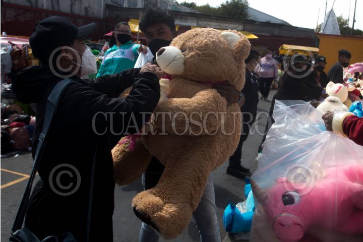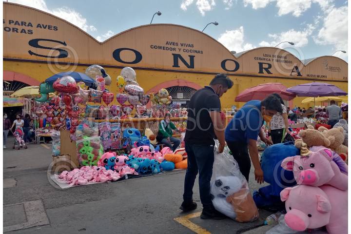 Locatarios del Mercado Sonora continúan vendiendo osos de peluche y globos con motivo de la celebración del Día del Amor y la Amistad