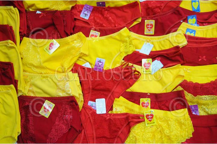 Ropa interior de color rojo y amarillo son compradas para obtener amor y dinero el siguiente año.