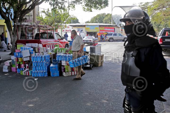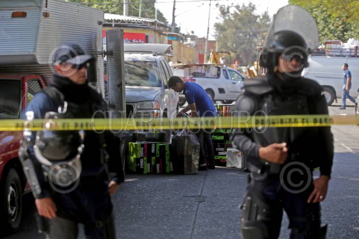 GUADALAJARA, JALISCO. 22NOVIEMBRE2016.- La madrugada de este martes autoridades municipales realizaron un operativo para retirar a locatarios y sus mercancías de lo que hasta hoy fuera la Feria Permanente del Calzado, ubicada en la calle Pensador Mexicano justo en los cruces de las calles 74 y 78, la cual tiene aproximadamente 30 años de antigüedad, al parecer el motivo, es por que dicho inmueble irrumpe algunas normas de los espacios públicos, ya que abarca parte de las banquetas y calles de los alrededores. FOTO : FERNANDO CARRANZA GARCIA / CUARTOSCURO.COM