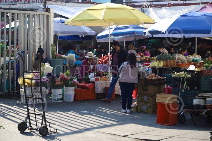 Entrada de uno de los mercados de la alcaldía de Azcapotzalco donde se ofrecen diversas mercancías.