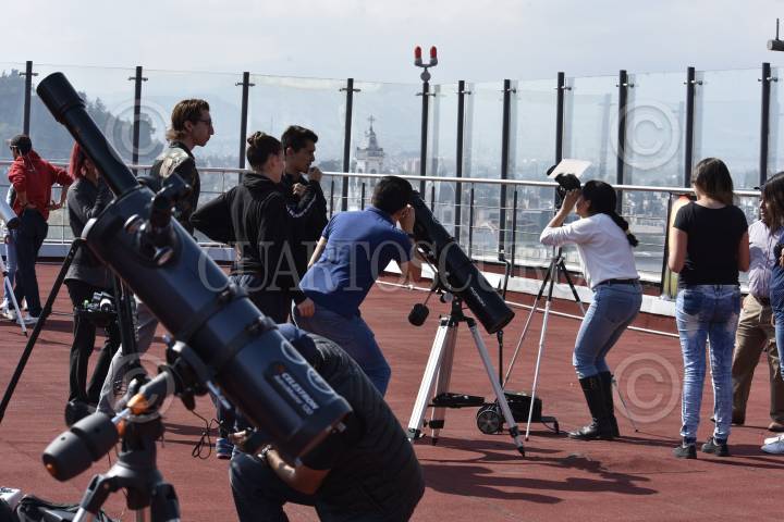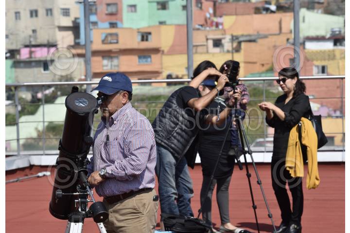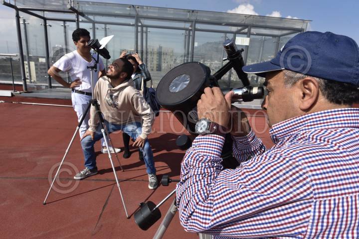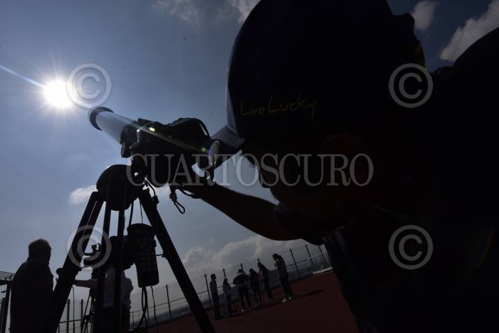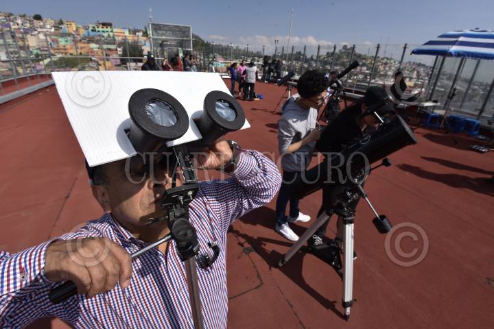TOLUCA, ESTADO DE MÉXICO, 11NOVIEMBRE2019.- Integrantes de la Asociación Astronómica del Valle de Toluca instalaron telescopios en el Teatro Morelos e invitaron a la población en general a observar el tránsito de Mercurio, que es el paso de este planeta por delante del Sol visto desde la Tierra, este evento se volverá a repetir hasta el año 2032. FOTO: CRISANTA ESPINOSA AGUILAR /CUARTOSCURO.COM