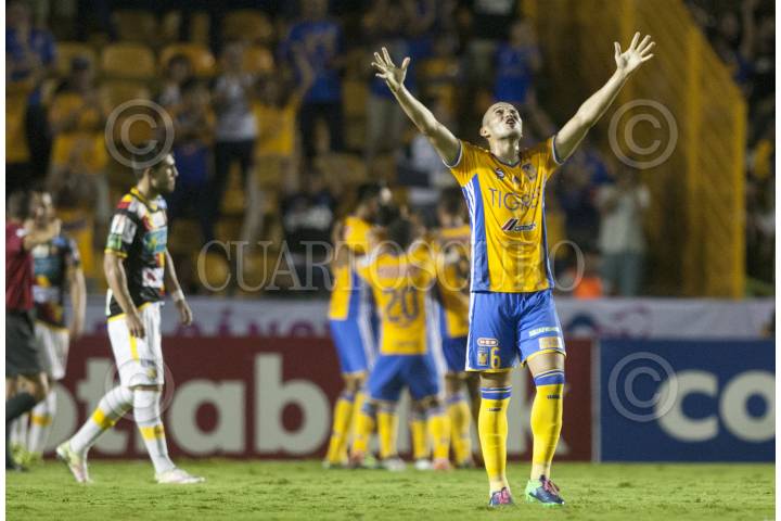 MONTERREY, NUEVO LEÓN, 18OCTUBRE2016.- Jorge Torres Nilo del equipo de los Tigres de la UANL celebra el triunfo que les da el pase a la siguen fase ante el equipo del Heridiano, en el Estadio Universitario, partido correspondiente en fase de grupos de CONCACAF Liga de Campeones 2016. Marcador Final: Tigres: 3 - Heridiano: 0 FOTO: GABRIELA PÉREZ MONTIEL /CUARTOSCURO.COM
