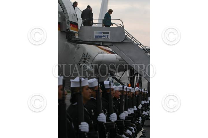 MÉXICO D.F. 18MAYO2008.- La canciller de Alemania, Ángela Merkel, arribó al hangar presidencial del Aeropuerto Internacional de la Ciudad de México, en el marco de su gira por América Latina. FOTO: RODOLFO ANGULO/CUARTOSCURO.COM
