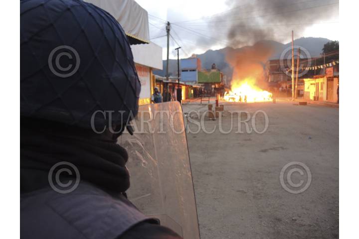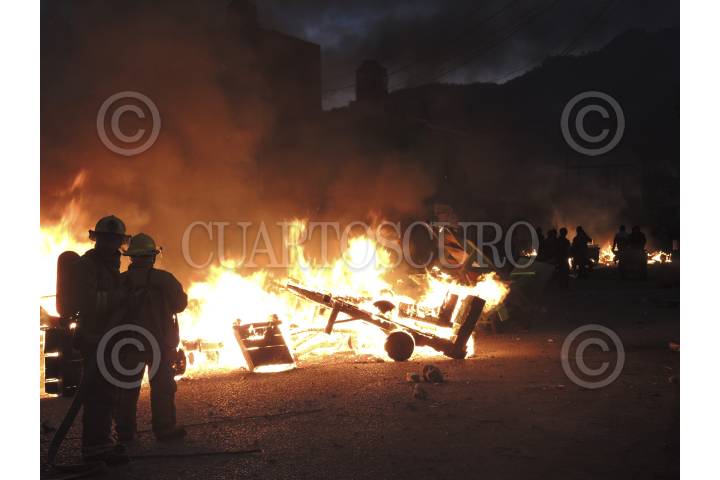 SAN CRISTÓBAL DE LAS CASAS, CHIAPAS, 13ENERO2015.- Locatarios del Mercado Popular del Sur (Merposur) se enfrentaron por el control del mercado con palos y piedras. Un vehículo fue incendiado durante la gresca. FOTO: RAÚL VERA /CUARTOSCURO.COM