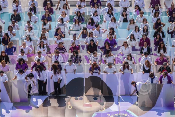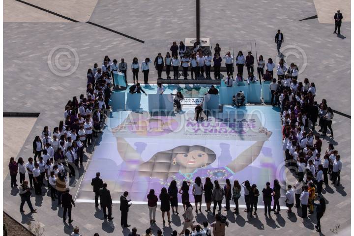 Mujeres trabajadoras de la Cámara de Diputados y diputadas de cada partido parlamentario participaron en el “Mosaico conmemorativo del Mes de las Mujeres y las Niñas”.