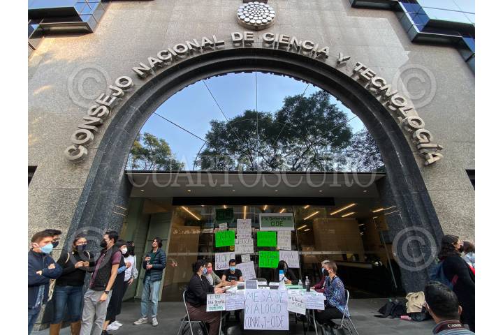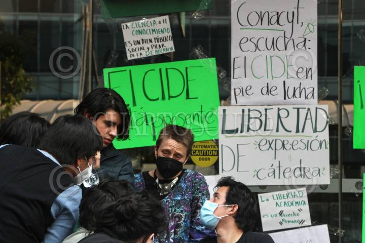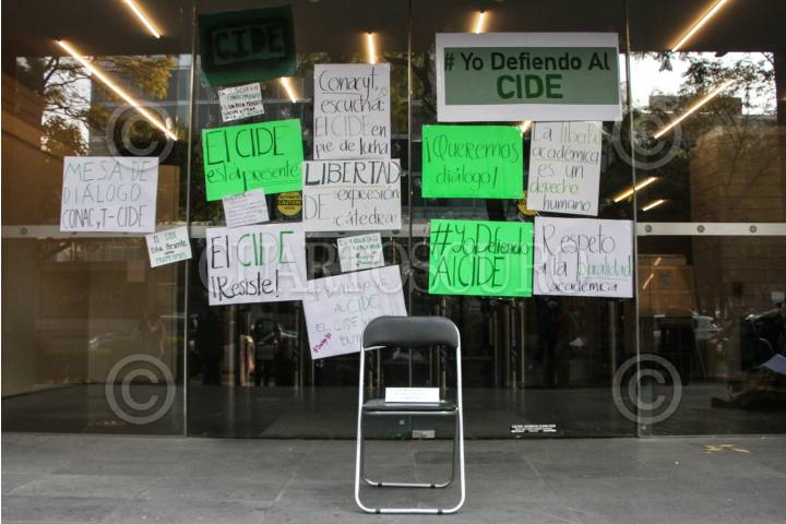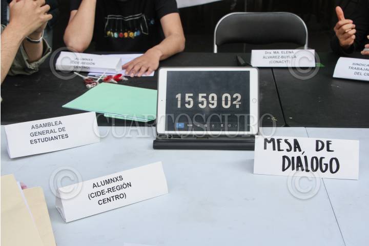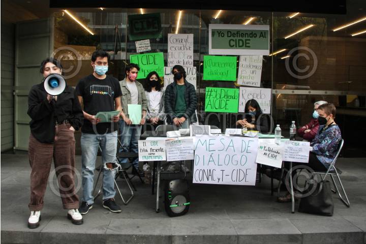 Sin éxito y con una espera de 5 horas estudiantes del CIDE, retiraron la mesa de diálogo que colocaron frente al Conacyt.