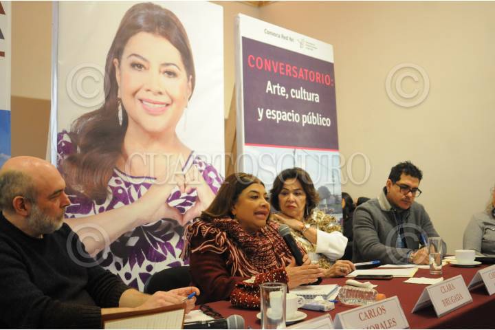 CIUDAD DE MÉXICO, 19DICIEMBRE2023. - Clara Brugada, precandidata única de Morena a la jefatura de gobierno, participó en el conversatorio :Arte, Cultura y Espacio Público. FOTO: DANIEL AUGUSTO /CUARTOSCURO.COM