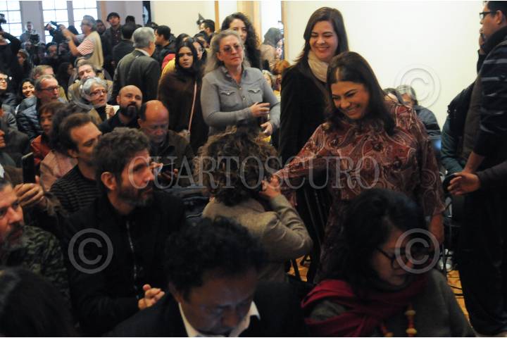CIUDAD DE MÉXICO, 19DICIEMBRE2023. - Clara Brugada, precandidata única de Morena a la jefatura de gobierno, llega a la reunión con la comunidad cultural como parte de su precampaña. FOTO: DANIEL AUGUSTO /CUARTOSCURO.COM
