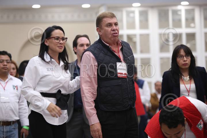 TOLUCA, ESTADO DE MÉXICO, 08AGOSTO2017.- Alejandra Del Moral, dirigente del PRI en la entidad mexiquense, y José Manzur Quiroga, secretario de Gobierno del Estado de México, participaron en la mesa de trabajo "Programa de Acción" rumbo a la XXII Asamblea Nacional Ordinaria del PRI. FOTO: ARTEMIO GUERRA BAZ /CUARTOSCURO.COM