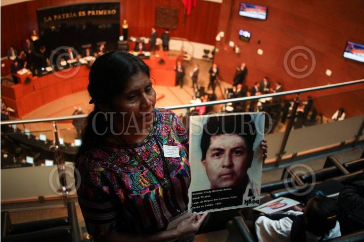 MÉXICO, D.F., 10DICIEMBRE2015.- Las madres de los migrantes desaparecidos en México, visitaron durante el marco de la caravana el Senado de la República exigiendo a las autoridades apoyo en la búsqueda de sus familiares. Después de esperar un par de horas en el patio del recinto, las madres presenciaron el inicio de la sesión ordinaria y se retiraron minutos después. FOTO: ISABEL MATEOS /CUARTOSCURO.COM