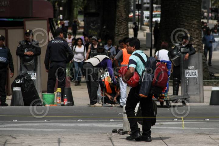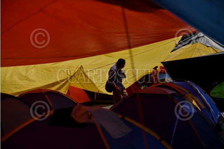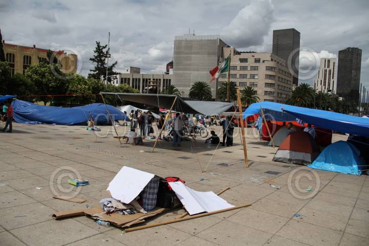 MÉXICO, D.F., 14JUNIO2015.- Maestros de la Coordinadora Nacional de Trabajadores de la Educación sección 22, levantan parte del plantón que mantienen en la plaza de la república, en el Monumento a la Revolución. FOTO: ADOLFO VLADIMIR /CUARTOSCURO.COM