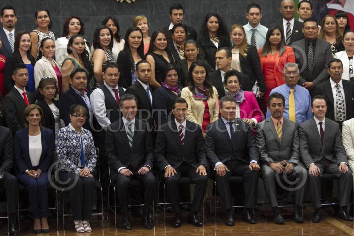 CIUDAD DE MÉXICO, 15MAYO2016.- Aurelio Nuño Mayer, secretario de Educación Pública, Enrique Peña Nieto, Presidente de México, y Juan Díaz de la Torre, presidente del consejo general del Sindicato Nacional de Trabajadores de la Educación, en el festejo del Día del Maestro, en el salón Adolfo López Mateos de la residencia oficial de Los Pinos. FOTO: MOISÉS PABLO /CUARTOSCURO.COM