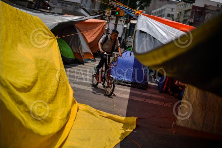 CIUDAD DE MÉXICO, 17MAYO2016.- Maestros de la Cordinadora Nacional de Trabajadores de la Educación de diversos estados, mantiene por tercer día el plantón sobre la calle Bucareli, en demanda de dialogo con la Secretaria de Gobernación. FOTO: ADOLFO VLADIMIR /CUARTOSCURO.COM